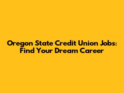 Oregon State Credit Union Jobs: Find Your Dream Career