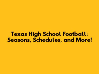 Texas High School Football: Seasons, Schedules, And More!